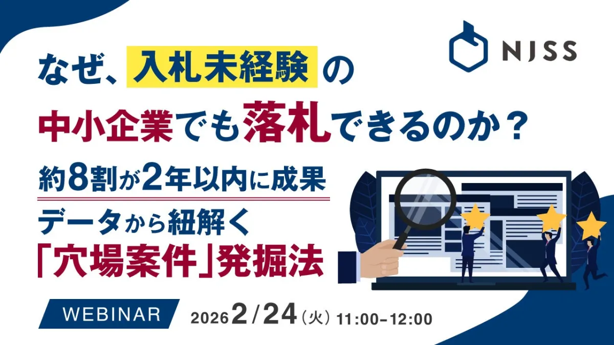 このウェビナーでは、15年間に渡る200万件以上の入札データを分析し、落札のしやすい案件の特徴を解説します。具体的には、どのような案件が競合が少なく、また、どこを見れば穴場が見つかるのかを詳しくお話しします。入札未経験の方でも、すでに参加しているがなかなか成果が出ていない方でも、実践できる視点をお伝えします。