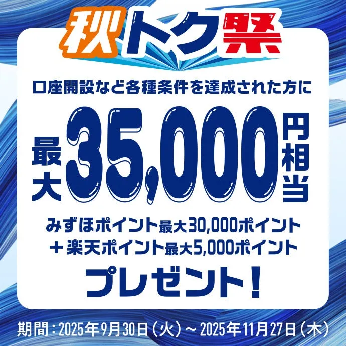 金融に関心の高まる現代、みずほ銀行が新たなキャンペーン「秋トク祭」を発表しました。このキャンペーンは2025年9月30日から11月27日まで開催され、参加条件を満たすことで最大35,000円相当のポイントをプレゼントします。