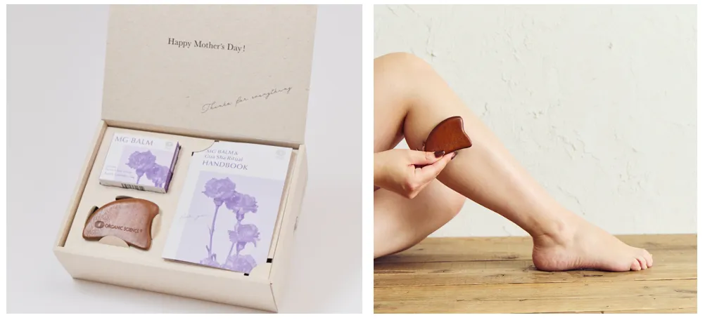 木製のカッサは肌にやさしく、滑らせた時の心地よさが魅力です。サンダルウッドを使用したこのカッサは、温かみのある質感が特徴で、インテリアとしてもおしゃれです。マグバームとの相性も抜群で、自宅で本格的なセルフケアが可能です。