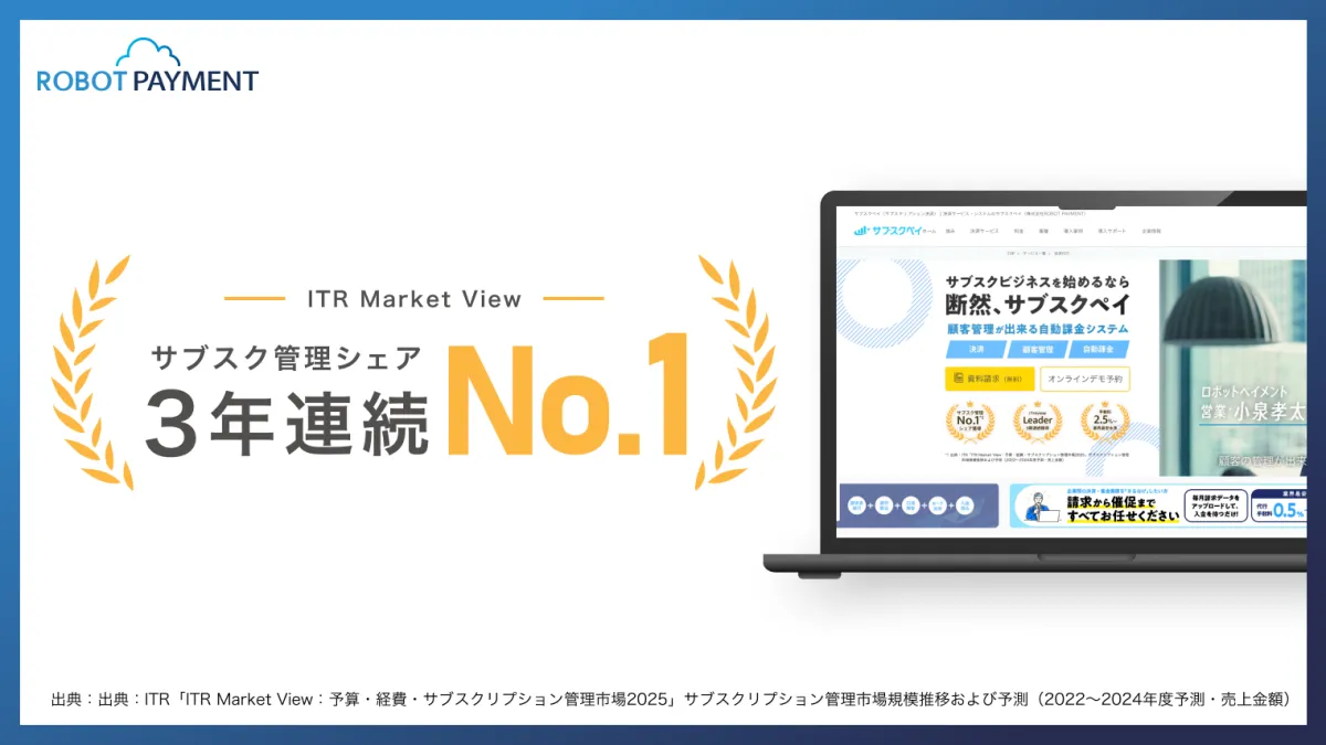 株式会社ROBOT PAYMENT(本社:東京都渋谷区)が提供するサブスクリプション管理システム「サブスクペイ」が、2025年4月に発表された市場調査レポートにおいて、国内サブスクリプション管理市場で3年連続の売上金額シェア1位を獲得したことが発表されました。これは、2022年度から2024年度にかけて継続的に得た成果であり、同社の技術力と市場での評価を示す重要な指標です。