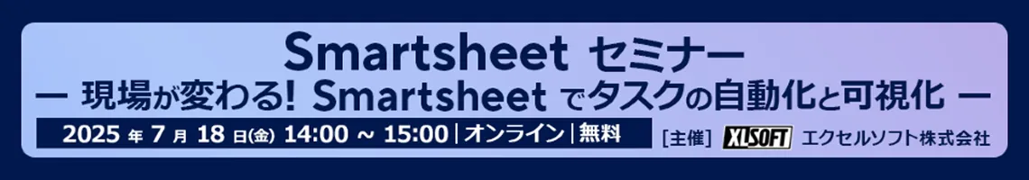 2025年7月18日(金)に、エクセルソフト株式会社がオンラインで行うセミナー「現場が変わる!Smartsheetでタスクの自動化と可視化」が注目されています。このセミナーは、業務効率化に興味のある方やSmartsheetの導入を検討している方に最適な内容であり、参加費は無料です。