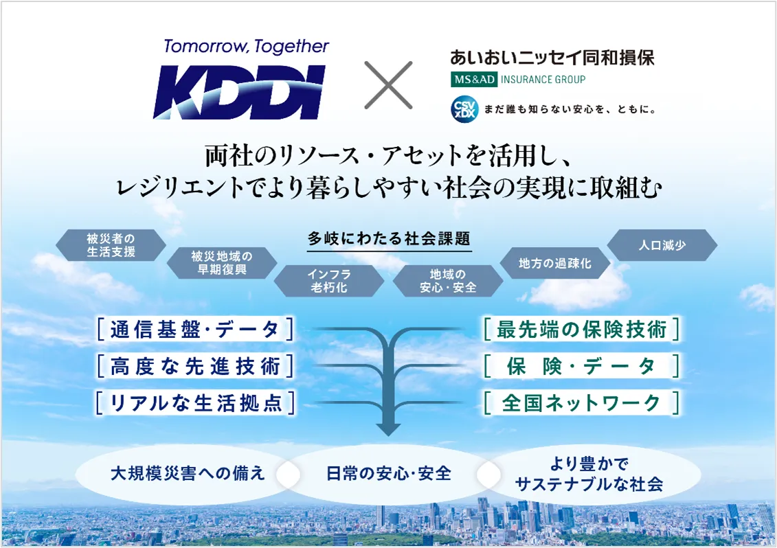 2025年8月28日、KDDI株式会社とあいおいニッセイ同和損害保険株式会社は、レジリエントで暮らしやすい社会を実現するための協業を始めることを発表しました。この協業は、両社の持つリソースや技術を活用し、社会が抱える様々な課題を解決することを目指しています。