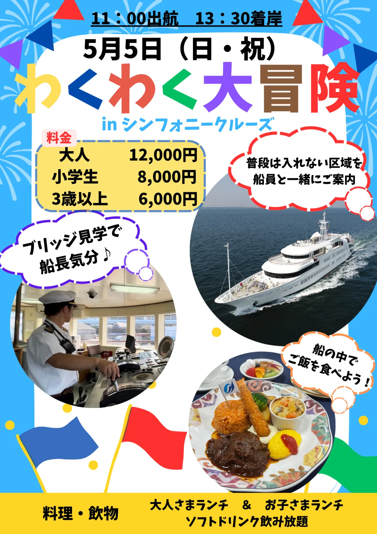 このクルーズは、家族で特別な思い出を作る絶好のチャンスです。普段とは違う子どもの日の過ごし方を求める皆様、ぜひご参加ください!
