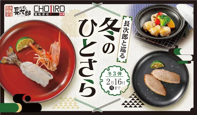 「活魚廻転寿司にぎり長次郎」と「廻転寿司CHOJIRO京都」が、2026年1月14日から2月16日までの間、冬メニュー第3弾を提供します。この特別なメニューのテーマは「冬のひとさら」。冬ならではの味覚が楽しめる貴重な機会です。