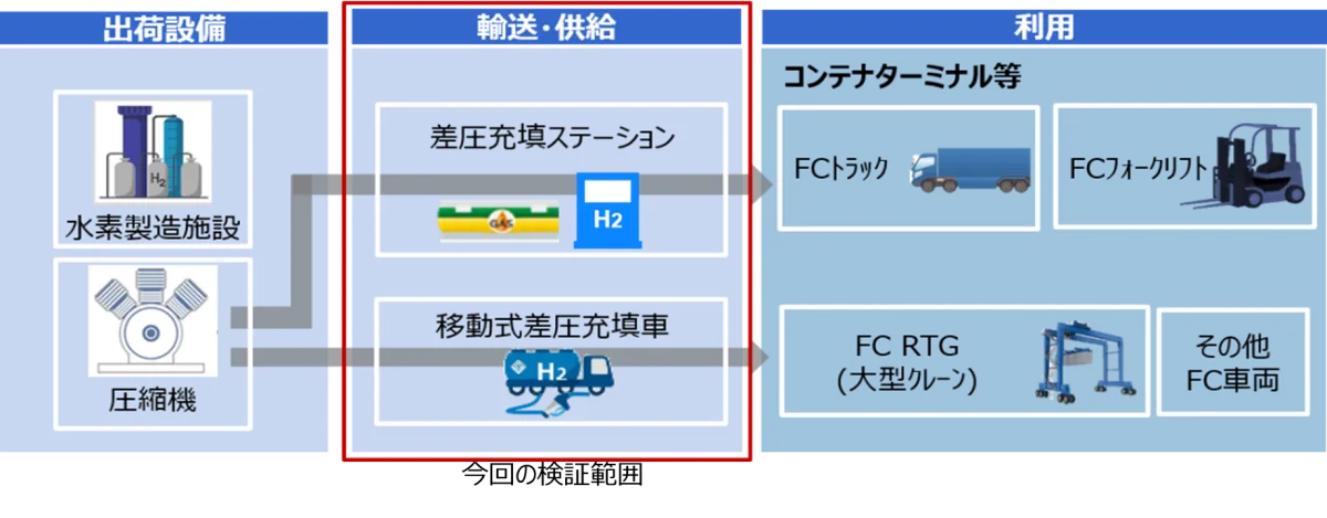本事業は、2025年度内に名古屋港の物流車両や大型クレーンのような自走できない貨物機器に対応した低コストの水素供給インフラを構築することを目指します。この際、日本の保安基準に合致させながら、技術的および事業的な検証を行っていく方針です。