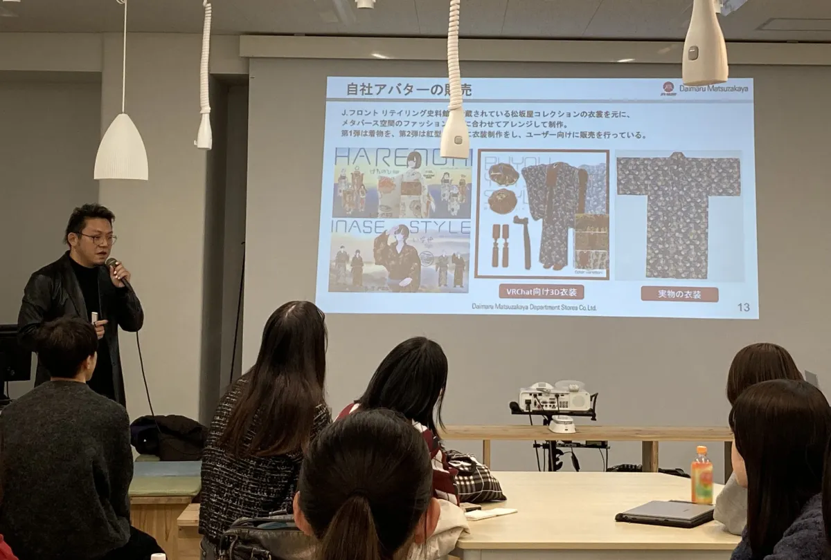 2026年1月、大丸松坂屋百貨店は青山学院大学の「デジタルストーリーテリングラボ」において、メタバースを活用したシティプロモーションに関する特別講義を開催しました。講義のテーマは「伝統芸能×メタバースによる地方創生」であり、受講生たちは実際に遠隔から伝統文化を体験することができました。