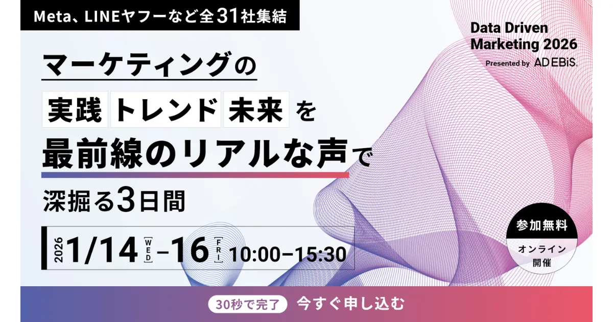 株式会社Digital Arrow Partnersが、2026年1月14日から16日の間に開催される「Data Driven Marketing 2026」に登壇することを発表しました。このカンファレンスは、進化するAI技術やCookie規制、また顧客接点の多様化といった現代のマーケティング環境を考察し、データを基にした意思決定の重要性を掘り下げる場となります。