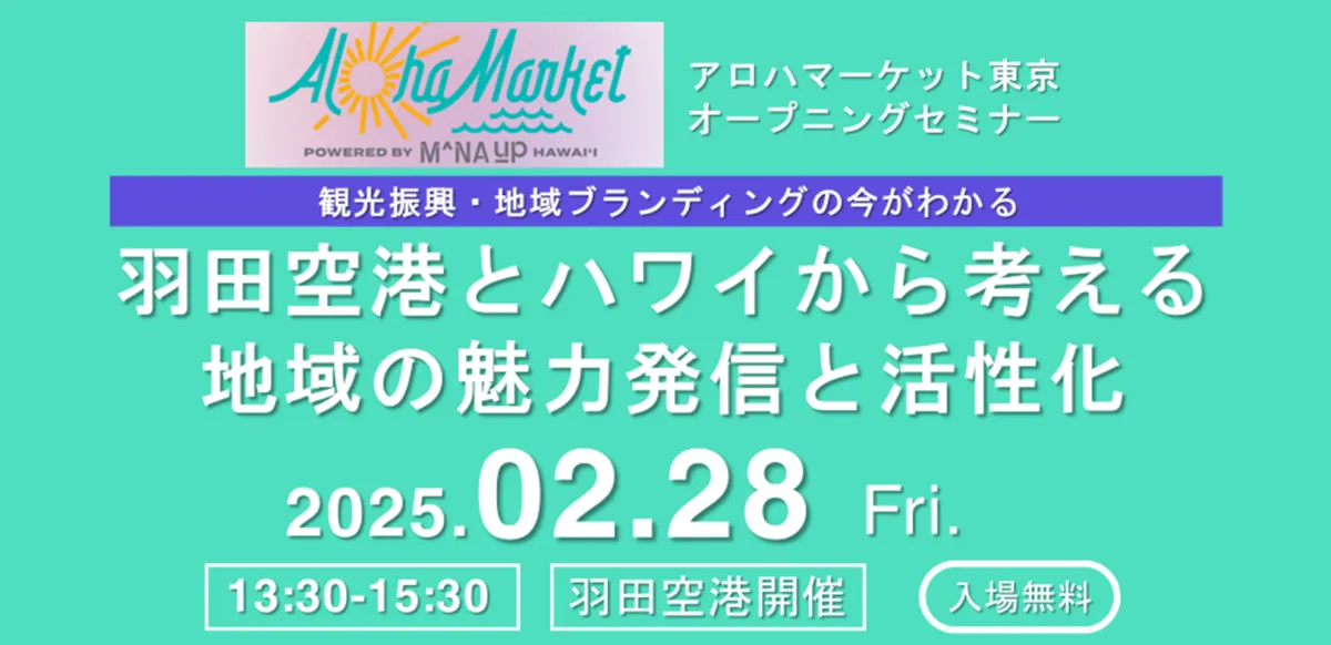 2025年2月28日、羽田空港第1ターミナルで「アロハマーケット東京」のオープニングセミナーが初めて開催されます。本セミナーは地域の魅力発信と観光振興をリードするイベントとして、羽田未来総合研究所とMana Upが共催します。日本とハワイのつながりを強調し、地域経済の活性化に向けた具体的な施策を探る貴重な機会となることでしょう。