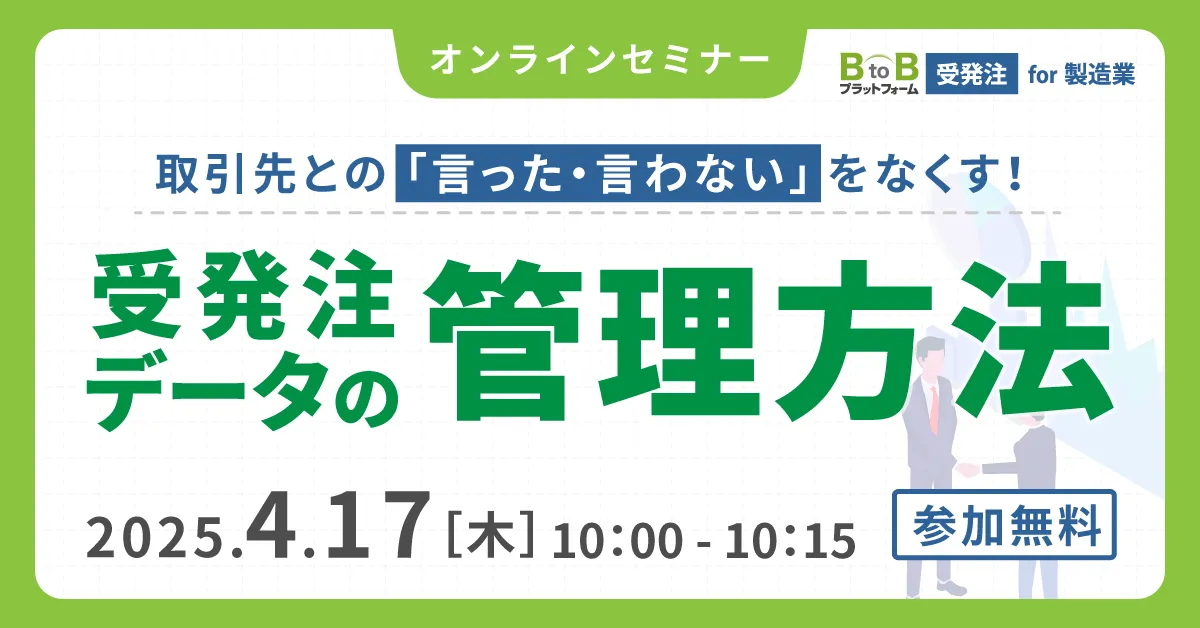株式会社テクノアは、2025年4月17日(木)にオンラインセミナー「取引先との「言った・言わない」をなくす!受発注データの管理方法」を開催します。このセミナーは、特に中小製造業の方々を対象に、受発注業務にまつわる課題の解決方法を提供するものです。