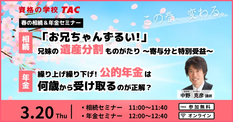 2025年3月20日(木・祝)、東京都千代田区に本社を構えるTAC株式会社が、人生100年時代を迎えた現代に必須のお金に関する知識を身につけるための「春の相続・年金セミナー」を開催します。このセミナーでは、ファイナンシャル・プランナーによる相続や年金制度の基礎から応用までの内容が取り上げられ、参加者が実用的な知識を楽しく学べる環境が整えられています。