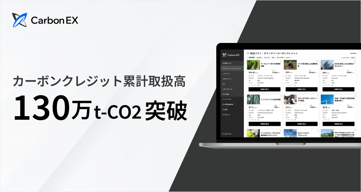 Carbon EXがカーボンクレジット取扱高130万トンを達成