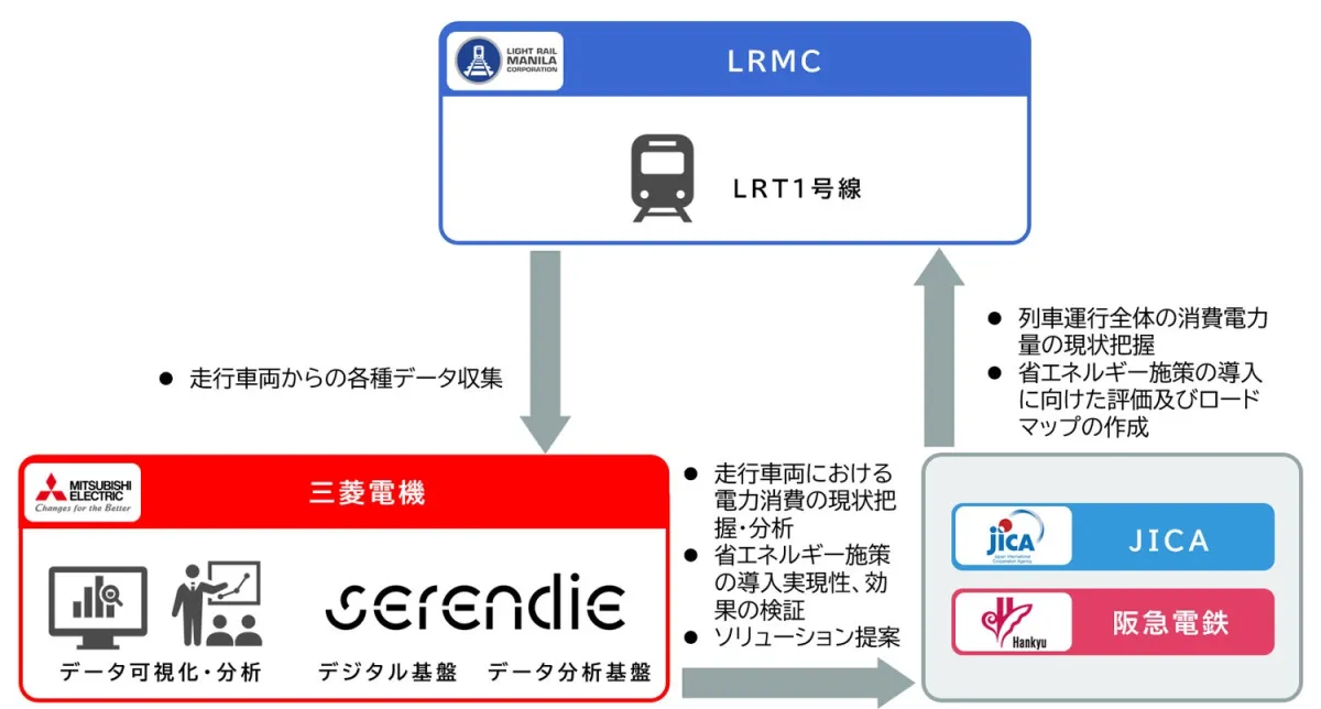 最近、フィリピンのマニラであの著名な三菱電機株式会社が、日本の独立行政法人国際協力機構(JICA)や阪急電鉄と連携し、都市旅客鉄道の省エネルギー化を進めることに参画しました。具体的には、マニラのLight Rail Transit System Line1(LRT1号線)において、データ分析サービスを用いて電力消費を把握し、省エネルギー施策の導入を図るというものです。