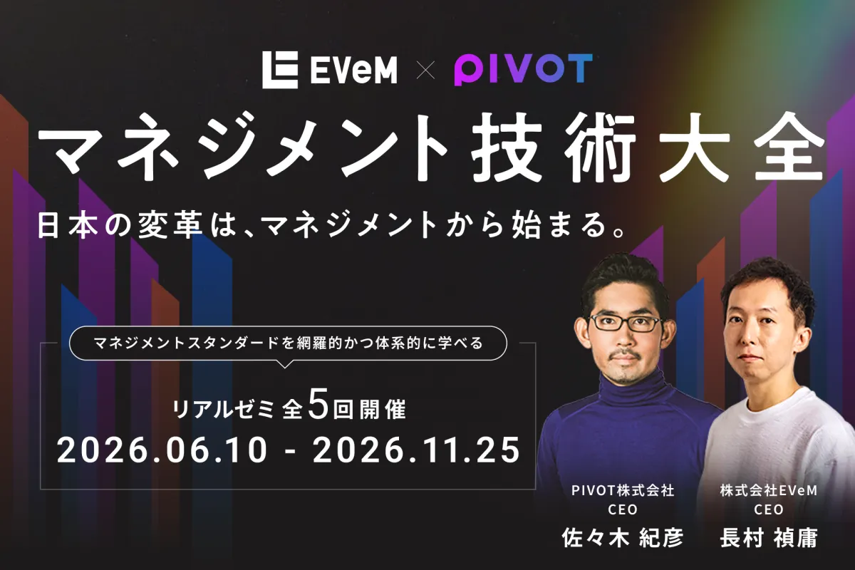 年功序列や終身雇用といった旧来のマネジメントスタイルは、近年の労働環境の変化により、その限界が明らかとなっています。特に、急速に変化するビジネス経済においては、マネジメント技術の進化が不可欠です。この背景を受けて、EVeMとPIVOTは、具体的なマネジメント手法を提供することに注力しており、これにより日本の管理職や経営人材がさらなる高みを目指すことを後押しすることを目指しています。