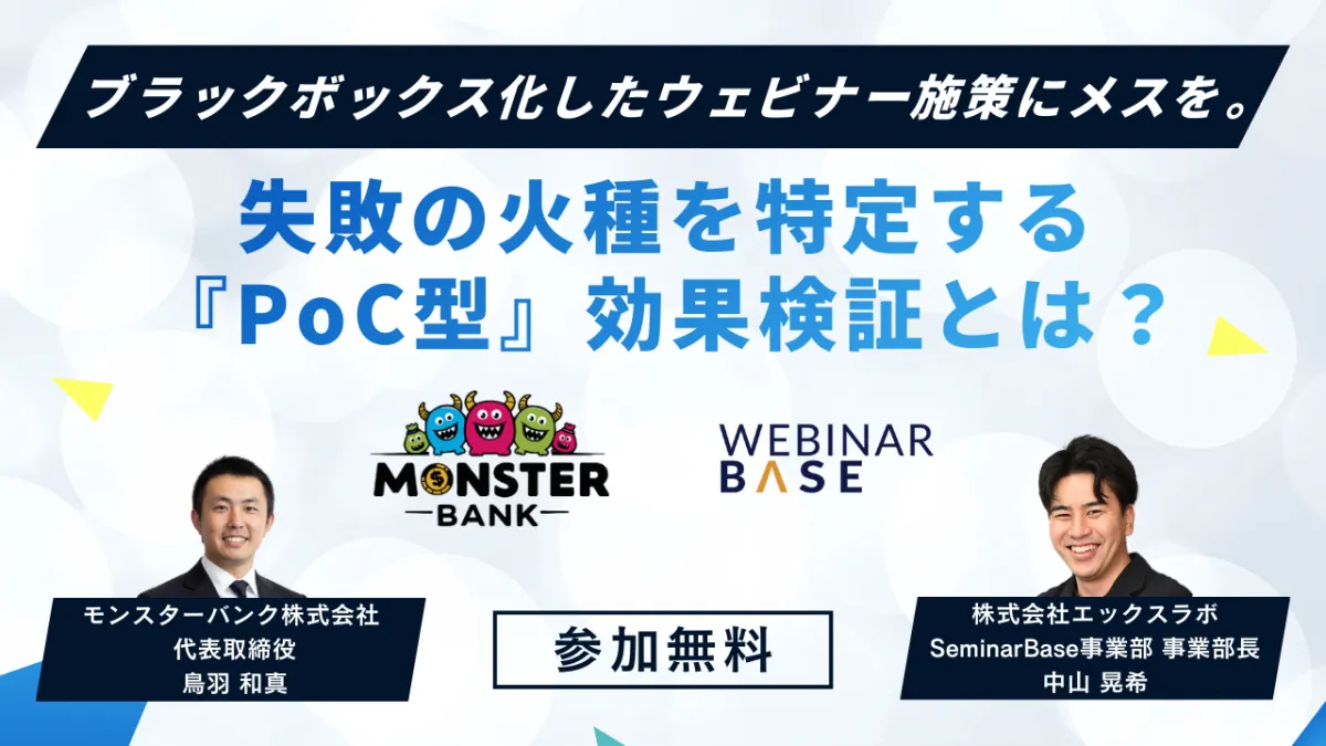 ウェビナーを運営する中で重要な役割を果たす「WebinarBase」は、ウェビナーの開催から商談化、売上創出までのプロセスを一元的に管理できるプラットフォームです。このツールはウェビナー運営に必要な業務を軽減し、データを活かした分析によって商談へとつなげる機能を持っています。これを通じて、ウェビナー運営が単に知識共有の場で終わらず、事業成長を実現するための強力なパートナーになります。