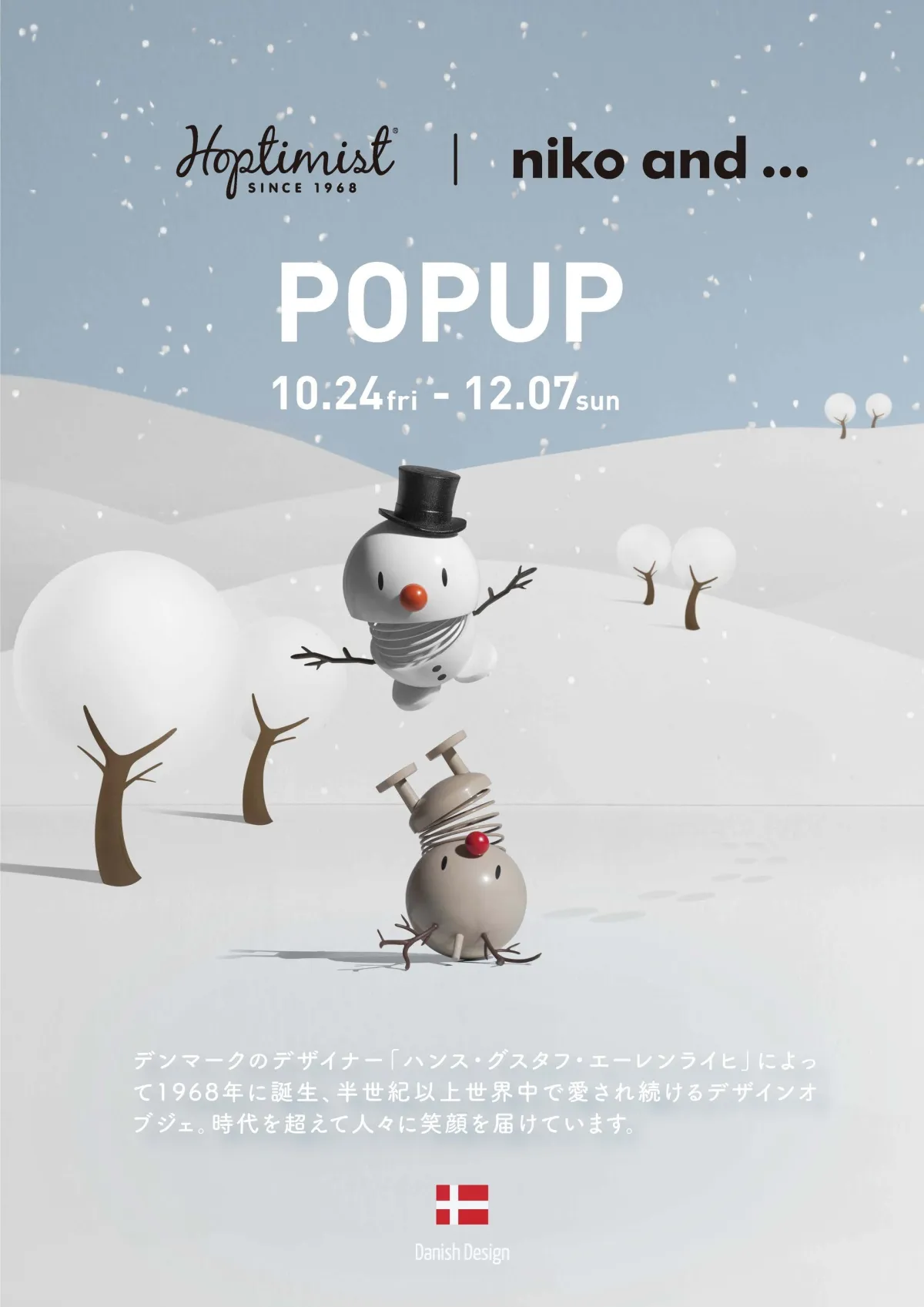 デンマークの人気デザインオブジェ「Hoptimist(ホプティミスト)」が、ファッションブランド「niko and...(ニコアンド)」の11店舗で、期間限定のポップアップイベントを開催します。このイベントは、2023年10月24日から12月7日までの期間中、各ストアで展開されます。特に、クリスマスコレクションは国内最速で手に入るチャンスです!
