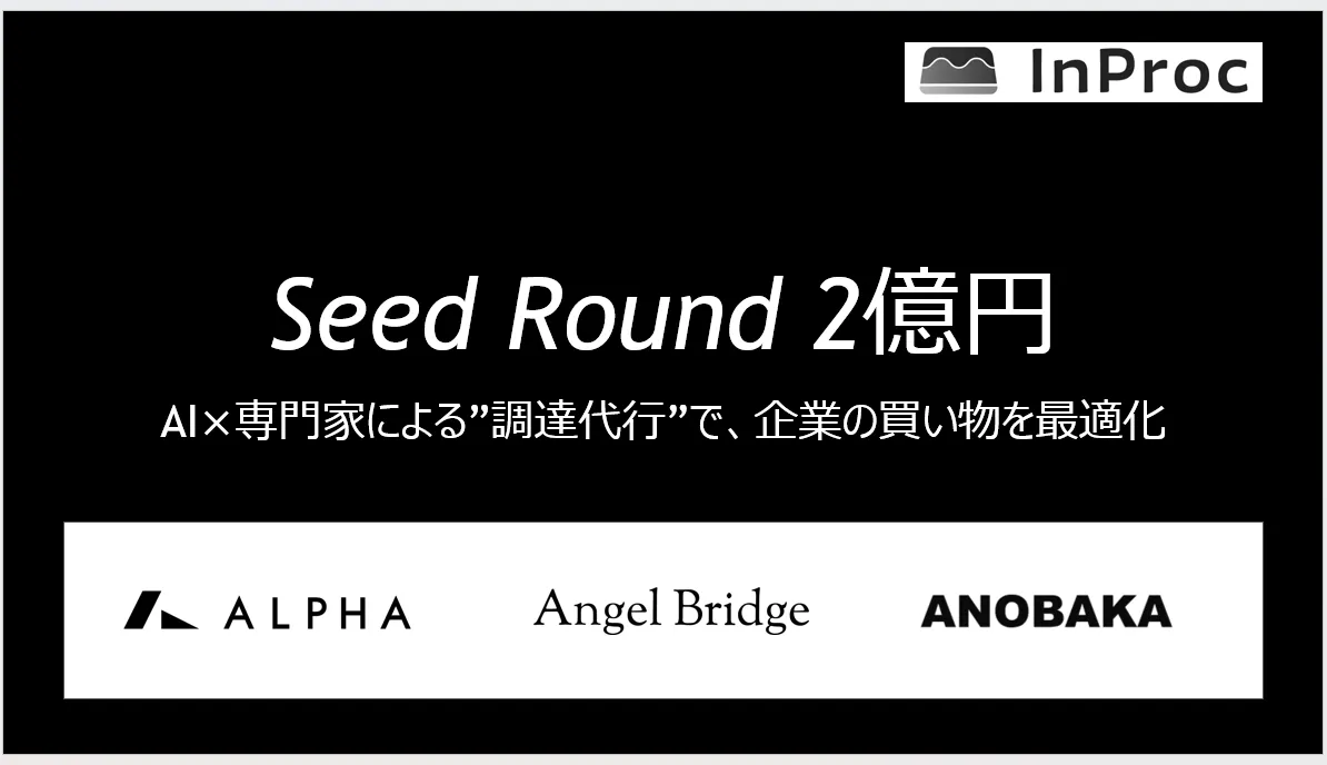 株式会社InProc(インプロック)が、シードラウンドにおいて2億円の資金調達を実施したことが報じられました。この資金は、企業の調達業務をAIと専門家の力で支援するサービスを展開するために活用されます。InProcのミッションは、「企業競争力の源泉である調達を再定義する」ことです。