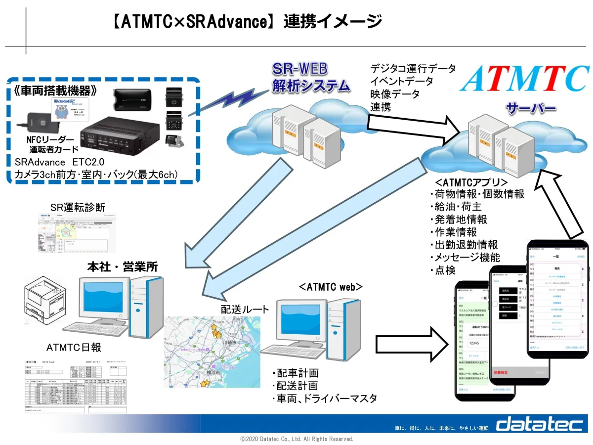 今回の連携により、SR Advanceから取得される車両の位置情報がATMTCの地図上でリアルタイムに表示されるようになります。これにより、ドライバーや管理者はどこに車両があるかを簡単に把握できます。また、SR Advanceの機能が単なる運行記録に留まらず、車両に関連するデータを集める中心的な端末として機能することになります。