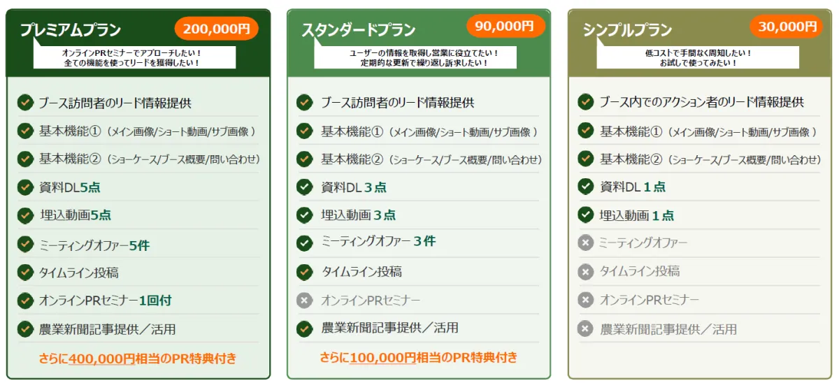このように、目的や予算に応じた3つのプランが用意されており、特に自社でセミナーを実施したい企業にはプレミアムプランが魅力的です。一方で、参加の費用を抑えたいと考える企業にはシンプルプランが選択肢となるでしょう。
