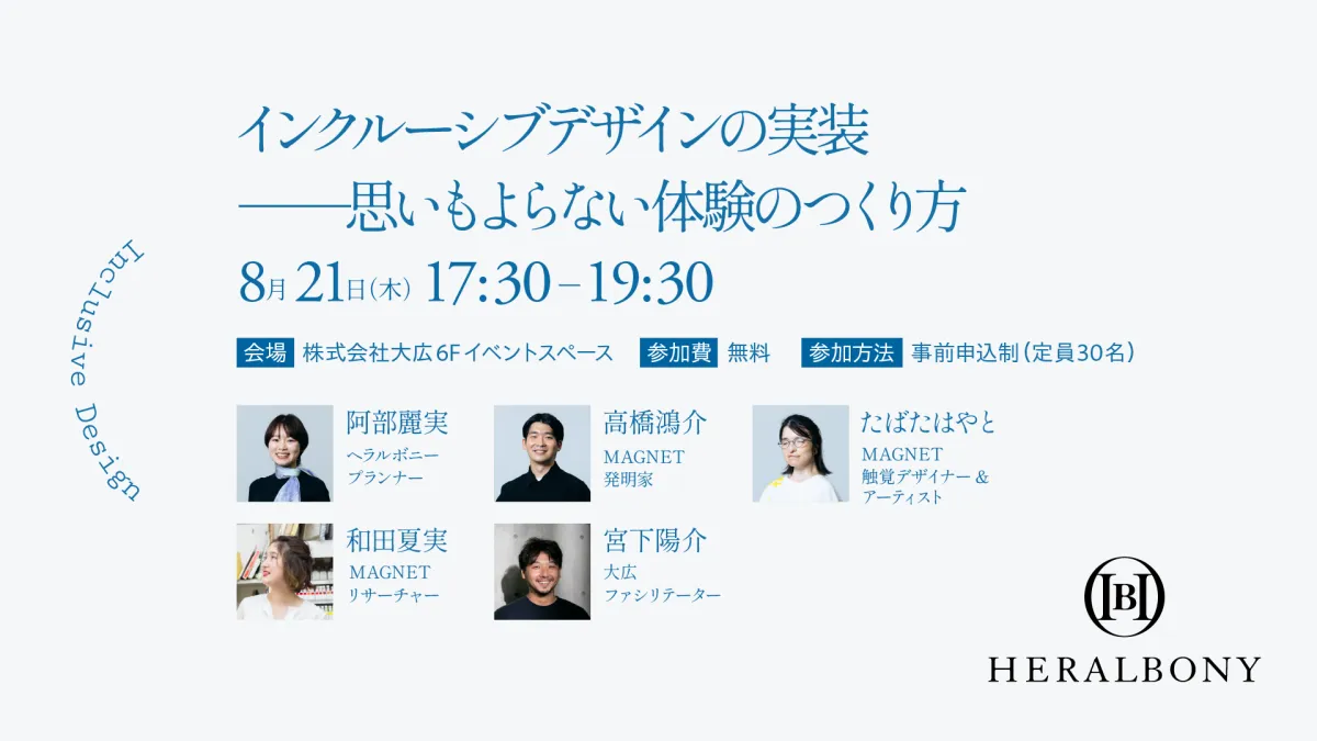 この新サービスは、空間やプロダクト、体験の設計プロセスにインクルーシブな視点を組み込むことで、社会的な多様性(DE&I)を実現する企業や自治体を支援します。また、サービス開始にあたり、2025年8月21日には専門家を招いた体験型イベントも開催し、具体的なインクルーシブな視点を企業がどのように活かせるかを学ぶ機会を提供します。