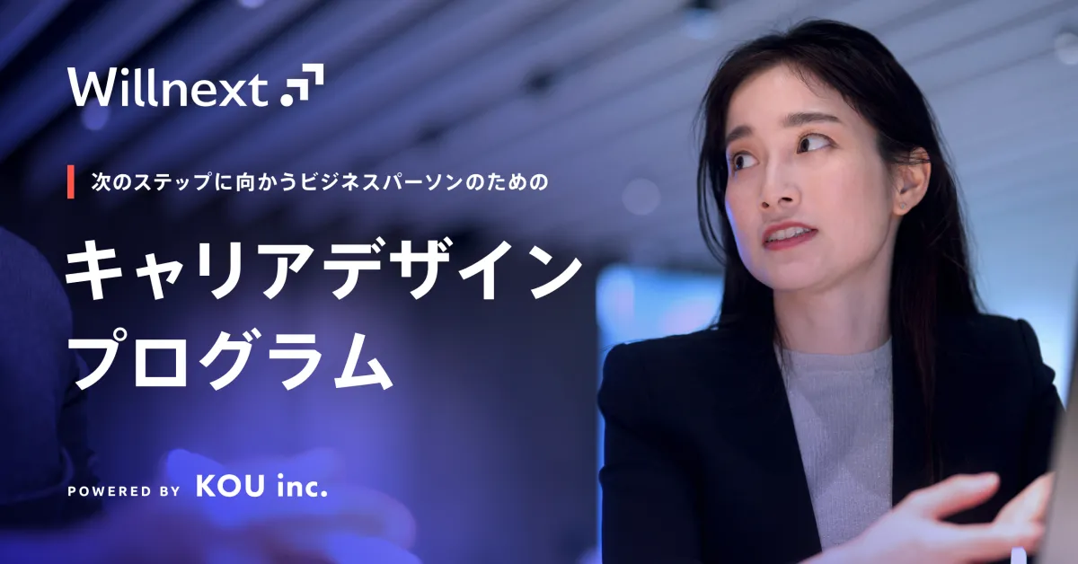 株式会社KOU(東京都渋谷区、代表取締役:中村真広)は、法人向けに新しいキャリアデザインプログラム『Willnext(ウィルネクスト)』の提供を2023年2月26日より開始しました。このプログラムは、ビジネスパーソンが自らのキャリアを自律的にデザインするための支援を目的としています。