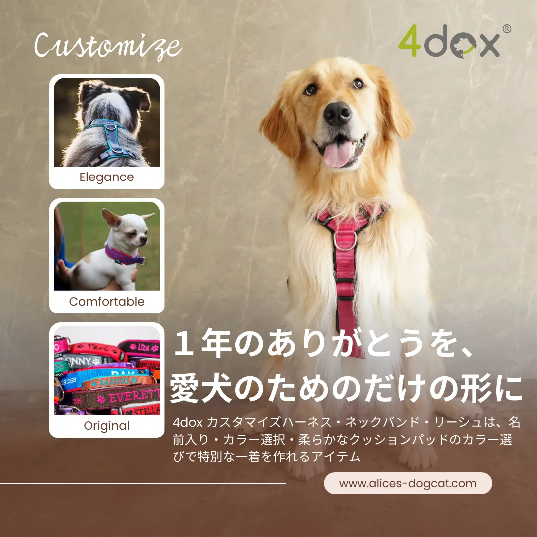 愛犬との日々を共に過ごす中で、ふとした瞬間に感じる感謝の想い。それを形にする方法として、今注目を集めているのが「4dox(フォードックス)」のカスタマイズ商品です。この記事では、愛犬への1年間の「ありがとう」を形にするハーネスやネックバンドについてご紹介します。