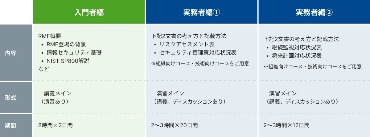 既存の技術者向けコースは、主に防衛装備品製造企業を対象としていましたが、新版の実務者編では防衛装備品や情報システムのオーナー組織も対象としており、さらに多様な受講者を迎えることができるデザインになっています。