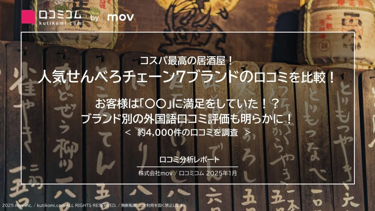 日本の居酒屋文化において、コストパフォーマンスが重視される中、最近ますます注目を集めているのが「せんべろ」スタイルの店舗です。その中でも、特に人気の7ブランドについて行った口コミ分析をもとに、消費者の声を紐解いていきます。この調査では、全国に展開するせんべろチェーン店の中から選ばれた7ブランド、すなわち「晩杯屋」、「ほていちゃん」、「じぃえんとるまん」、「居酒屋一休」、「かぶら屋」、「さくら水産」、「蔵元居酒屋清龍」の合計4,016件の口コミを対象に、その評価点数や傾向を詳細に分析しました。