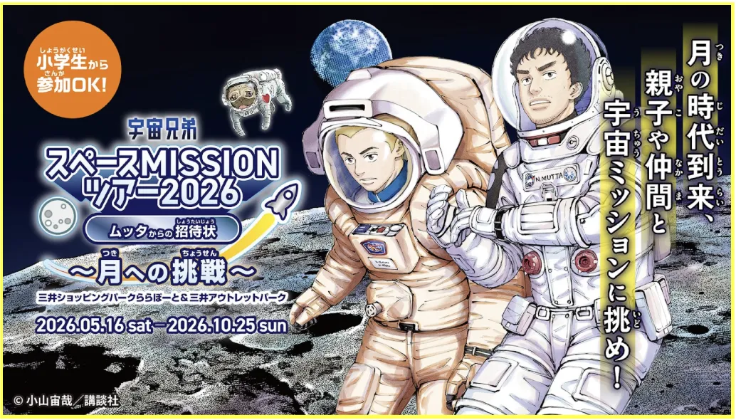 2026年、新たな試みとして「宇宙兄弟スペースMISSIONツアー2026 ムッタからの招待状 ~月への挑戦~」が全国14の三井不動産が運営するショッピング施設で開催されることが決定しました。本イベントは、宇宙をテーマにした人気漫画『宇宙兄弟』と提携し、親子や友人とともに本格的な宇宙ミッションを体験できる機会を提供します。