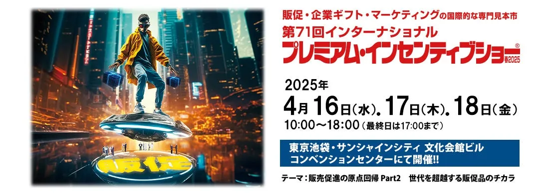 2025年の春、業界注目のイベント「第71回インターナショナル プレミアム・インセンティブショー春2025」が、東京池袋のサンシャインシティ文化会館で開催される。このイベントは、販促や企業ギフト、マーケティングに関する専門見本市として、毎年多くの企業や関係者が集まる。