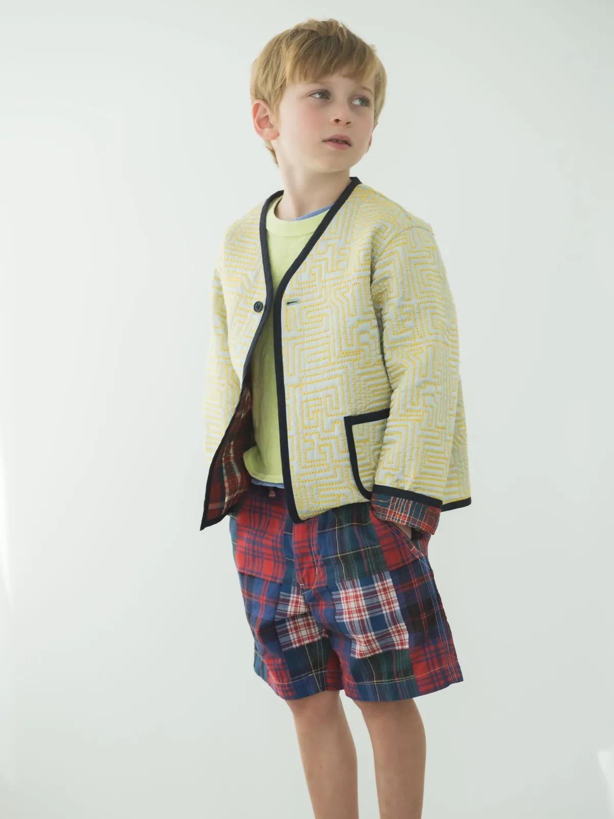 今回登場する特殊なジャケットは、過去の人気アイテムを基にキッズ向けに特別に復刻されたものです。アフリカのプリミティブなデザインにインスパイアされた刺繍が施されており、太い糸を使用した大胆なスタイルが特徴です。このキルトジャケットは、暖かな中綿を内蔵しており、立体的なシルエットを実現しています。さらに、ロンハーマンの子どもたち専用にカスタマイズされたカラーリングでデザインされています。