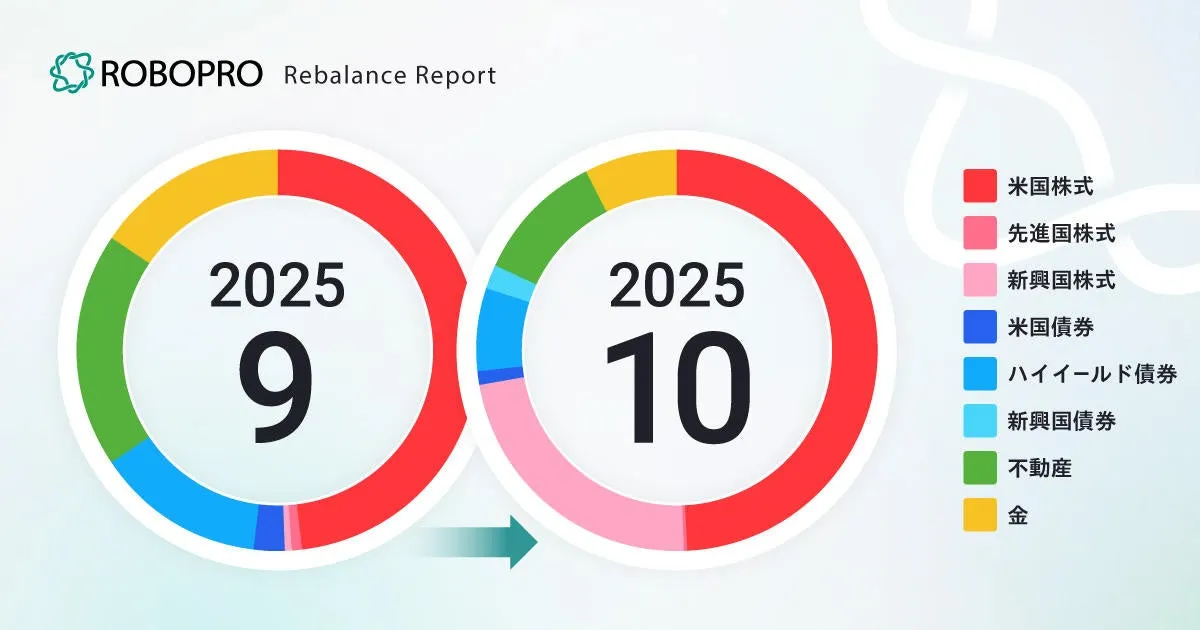 株式会社FOLIO(東京都千代田区)は、2025年9月30日付で月一回実施する投資配分の変更を行いました。投資の見通しを改善させた米国株式および新興国株式に注目し、これを中心に構成された新しい8資産ポートフォリオが形成されました。