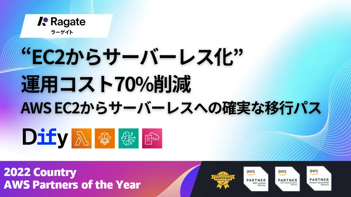 Ragateは、AWS認定サーバーレス・デリバリー・プログラム(SDP)を受けた企業としての専門知識を活かし、効率的で迅速なサーバーレス化を実現する新サービスの提供を開始しました。これにより多くの企業が経営課題を解決し、さらなる発展を目指せることを期待しています。