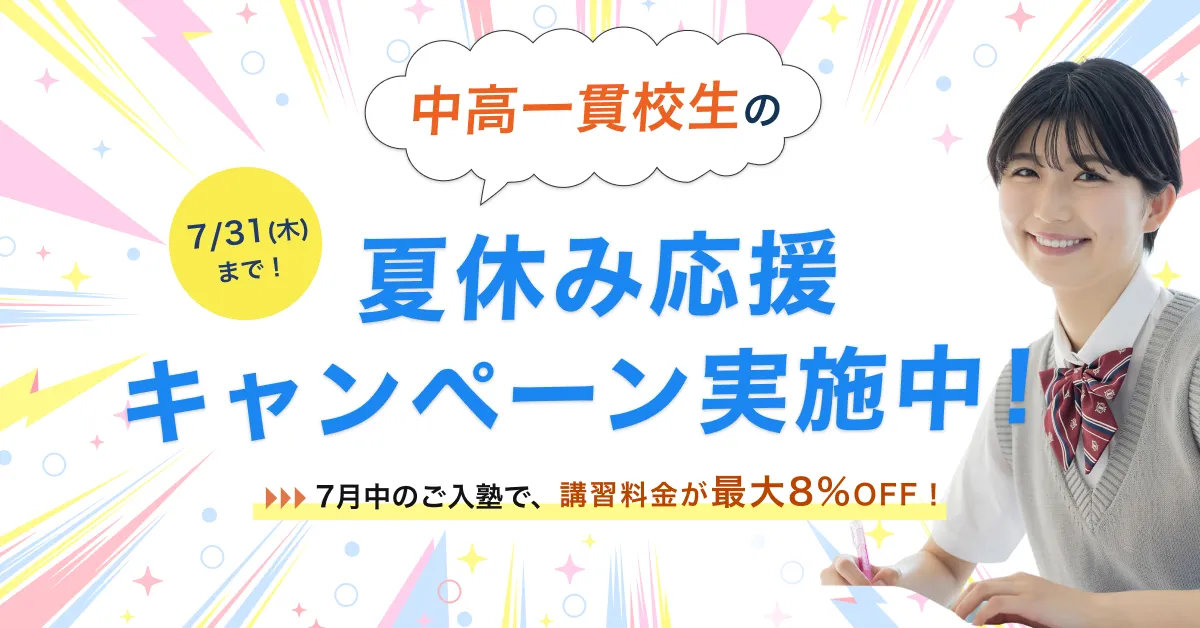 株式会社メイツが運営する『中高一貫校専門 個別指導塾WAYS』が、2025年7月31日までの期間限定で「夏休み応援キャンペーン」を開始しました。キャンペーンを利用すれば、夏期講習の料金が最大8%オフとなるため、中高一貫校生にとっては学力を向上させる絶好のチャンスです。