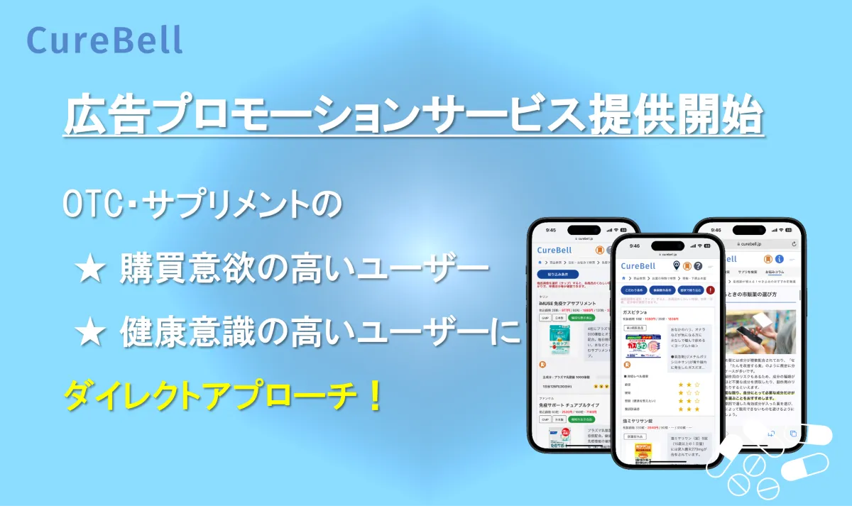 ウィルベース株式会社が、生活者向け市販薬(OTC)およびサプリメント選定支援Webアプリ『CureBell』の広告プロモーションサービスを開始したとの発表がありました。このアプリは、ユーザーが市販薬やサプリメントをより便利かつ安全に選べることを目的としており、昨年4月から本格運用が開始されています。
