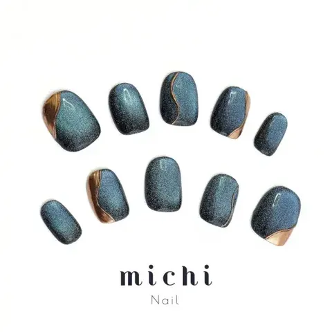 こちらのリンクからも購入可能なクールマグネイルは、鮮やかなブルーに輝くマグネットネイルです。シンプルなデザインながら、ゴールドのワンポイントが印象を引き締めています。これにより、ブルー系の洋服や着物との組み合わせもバッチリ。パーティーや特別な日のコーディネートにピッタリの一品です。