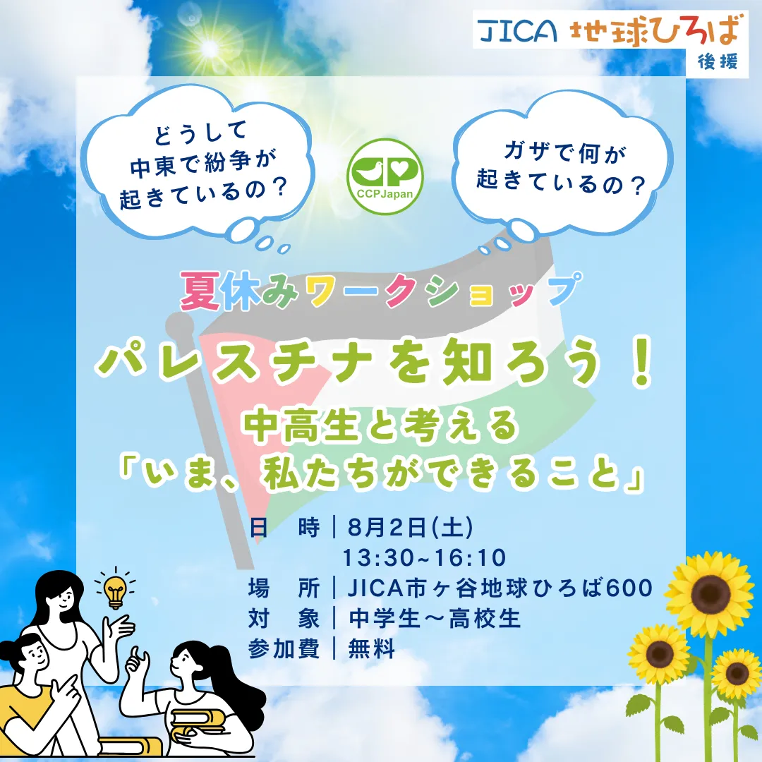 主催は「パレスチナ子どものキャンペーン」が行い、後援にはJICA地球ひろばがついています。この機会に、身近な問題として国際情勢を考えるきっかけを持つことは、非常に重要です。