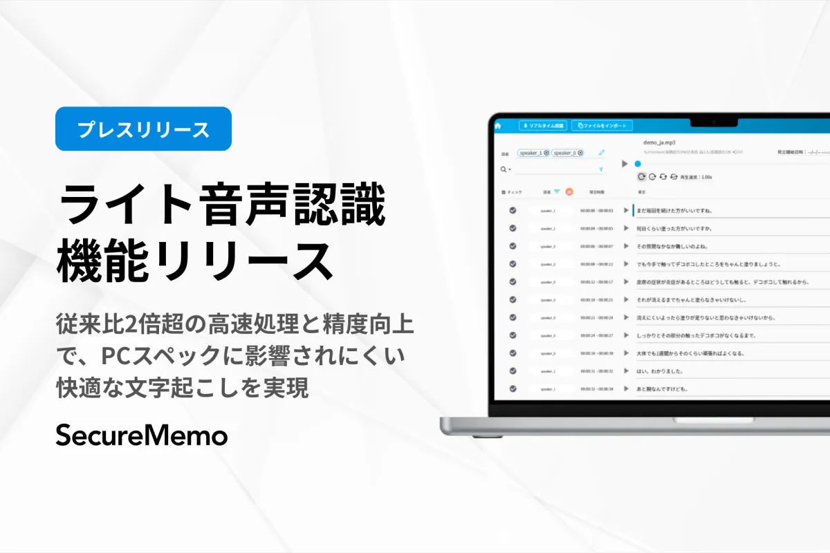 Nishika株式会社が発表したオンプレミス型の議事録作成サービス「SecureMemo」が、最新の音声認識機能「ライト音声認識」を搭載し、業務効率化を後押しします。本アップデートでは、処理速度の大幅な改善と認識精度の向上が図られ、より多くの企業にとって使いやすいツールとしての地位を確立しました。