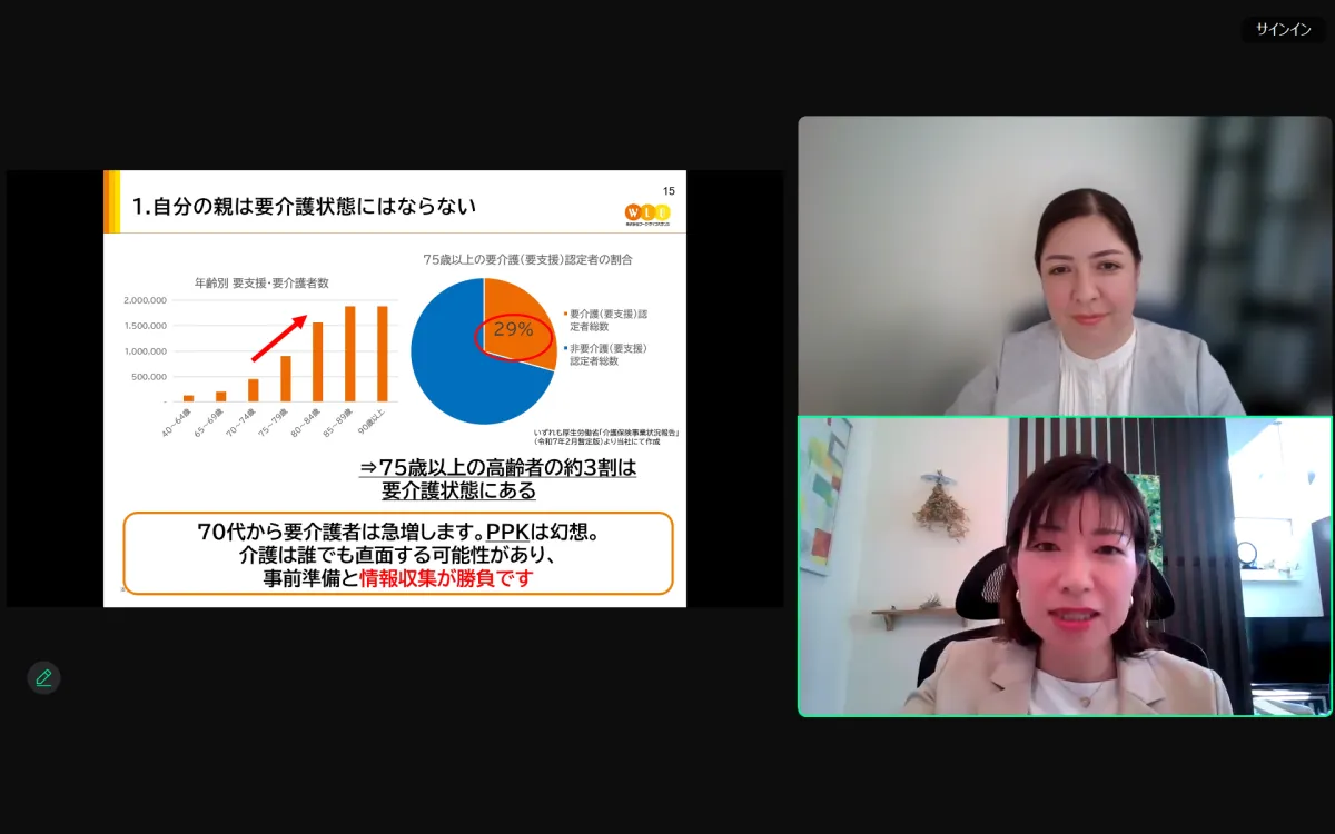 参加者からは「介護休暇が3か月だけでは不足に感じた」との意見や、「身体の介護を誰に頼むかという準備が必要だ」という気づきが報告されています。こうした意見は、参加者が改めて自身の家族の介護に対して向き合うことの重要性を理解した証です。