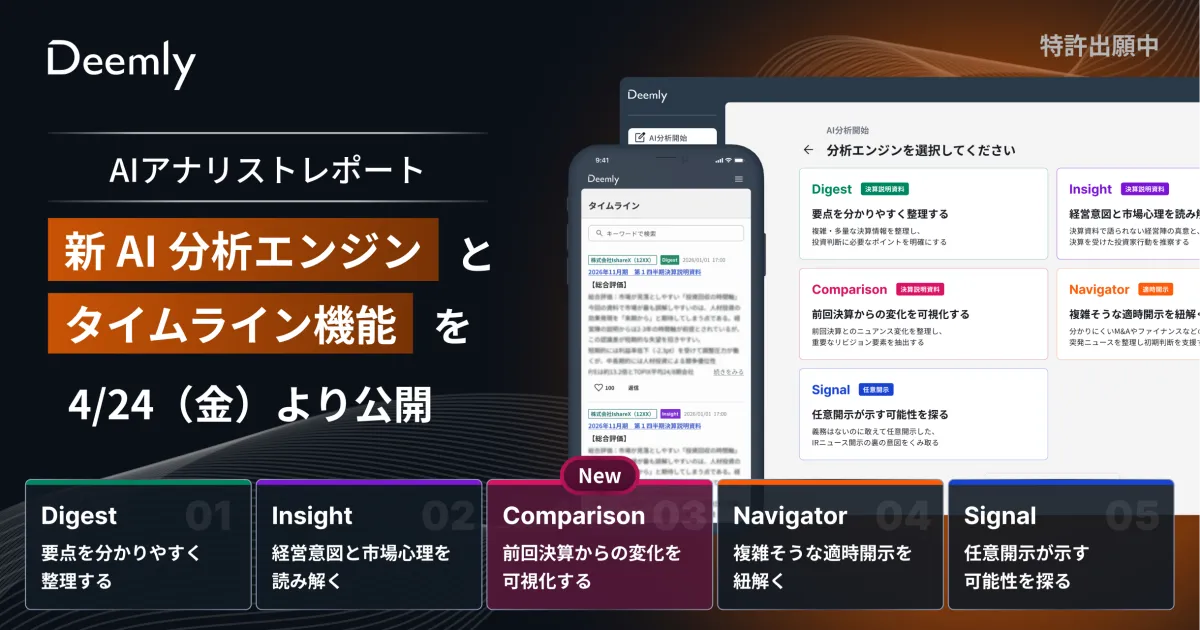 2026年4月24日、株式会社Ishareが運営する株式投資リサーチ・コミュニティプラットフォームが、大きなアップデートを遂げた新AI分析エンジン「Deemly」を発表しました。このエンジンの主な目的は、決算分析をより効果的に行うことであり、AI技術を駆使して、投資家に新たなインサイトを提供することです。