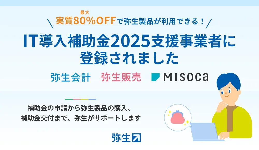 弥生は、この補助金の支援事業者として、2024年に引き続き2025年でも登録されています。特に、今年度は「弥生会計」、「弥生販売」、「Misoca」の3つの製品がインボイス対応として認定され、中小企業のバックオフィス業務のデジタル化を助ける役割を果たします。