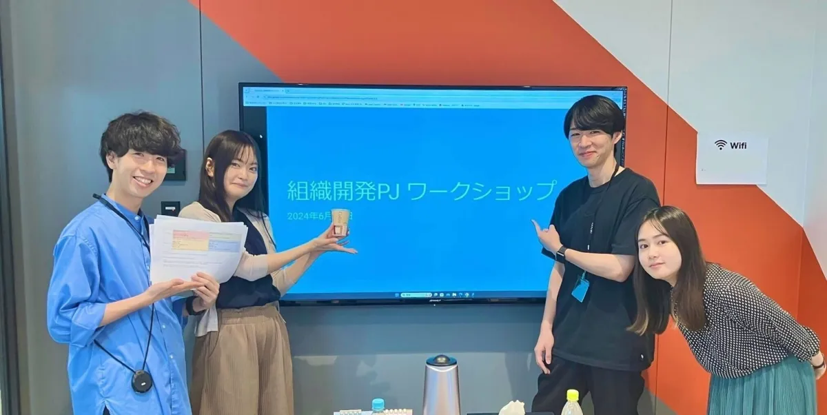 プロジェクトの運営は、異なる部署から選ばれた有志の社員によって行われます。特にマネジメント層に属さないメンバーを中心に構成されており、チーム内の主体性を育て、意見が交わされやすい環境を作ることが重要視されています。定期的に行われるミーティングでは、メンバーが各自のチームの目標や課題を持ち寄り、知見やアイデアを出し合います。このサイクルにより、各チームが実践に移すための具体的なアクションプランが生まれます。