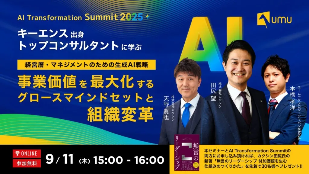2025年9月30日、東京都にて開催される「AI Transformation Summit 2025」のプレイベントとして、ユームテクノロジージャパン株式会社と株式会社カクシンが協同で行う生成AI戦略に関するウェビナーが注目を集めています。