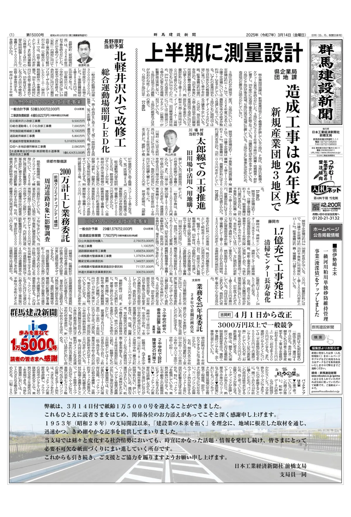 群馬建設新聞が迎えた1万5000号の記念キャンペーン