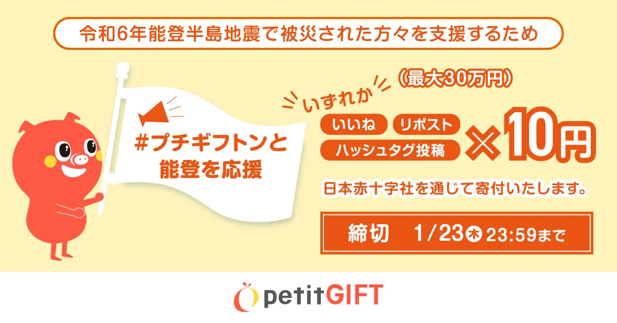 3. @petitgift_mdpをタグ付けし、「#プチギフトンと能登を応援」を付けて投稿する
