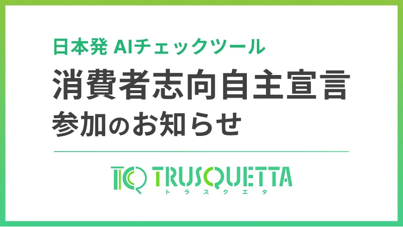 株式会社トラスクエタ(代表取締役:高橋 聡)は、消費者庁が推進している「消費者志向経営」の理念に賛同し、「消費者志向自主宣言」に参加しました。この宣言は、消費者の視点を重視した事業活動の継続を表明し、より安心して商品やサービスを利用できる環境を整えることを目的としています。これにより、トラスクエタは消費者庁のウェブサイトにも参加企業として掲載されることになります。