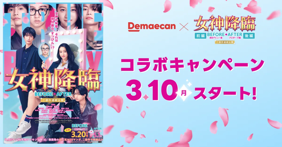 株式会社出前館は、3月10日から3月23日まで、2025年3月20日公開予定の映画『女神降臨』とのコラボキャンペーンを実施する。これは、日本最大級のデリバリーサービス「出前館」に新たな魅力を加える企画だ。