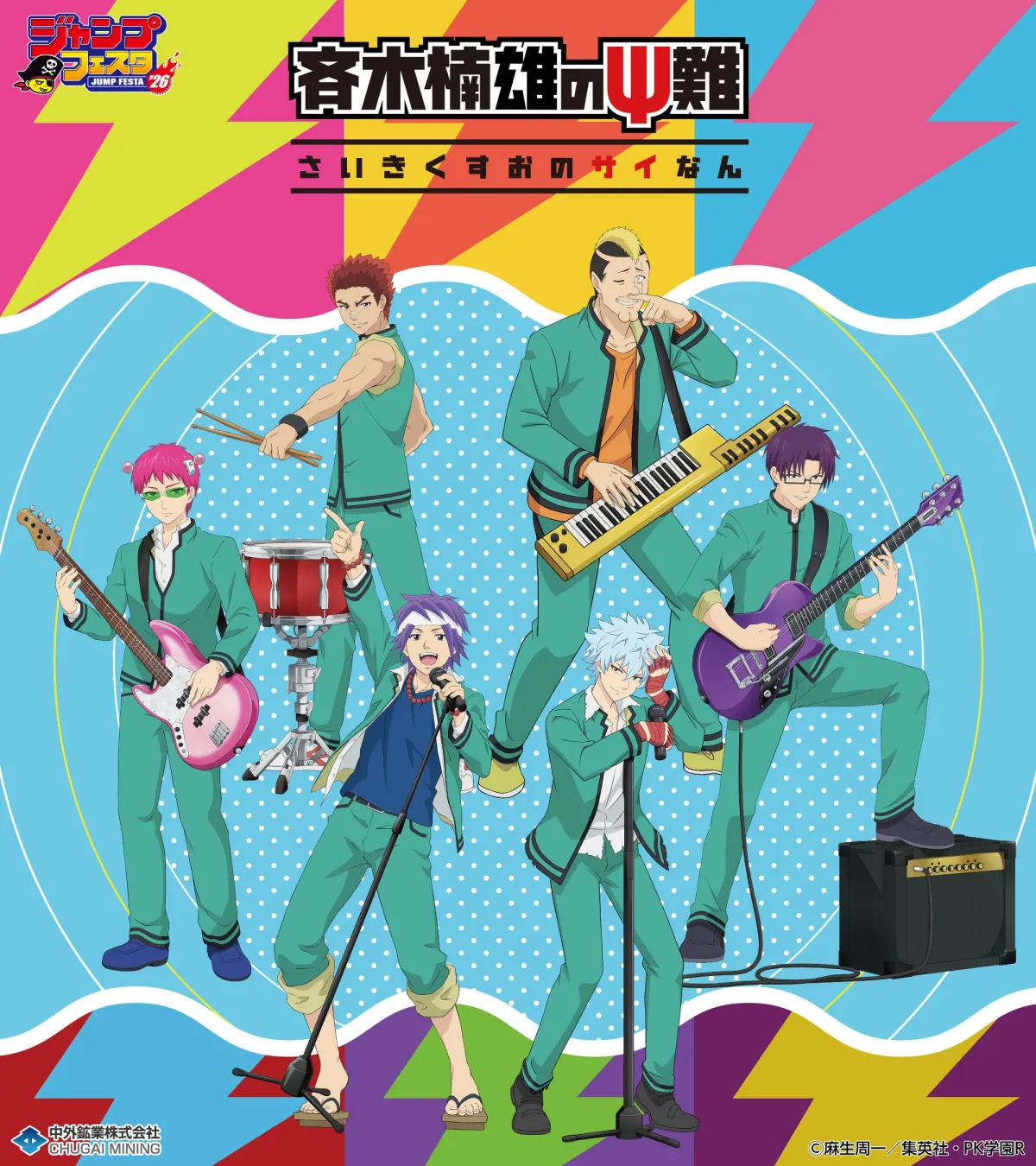 アニメ「斉木楠雄のΨ難」のファンに朗報です!2025年12月20日から21日まで、幕張メッセで開催される「ジャンプフェスタ2026」において、新規描き下ろしイラストを使用したグッズが登場します。中外鉱業株式会社のコンテンツ部が手がける新作アイテムは、特にバンドがテーマとなった商品が魅力です。