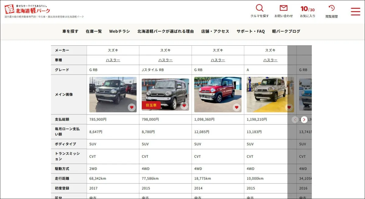 新たに追加されたこの機能では、気になる車両を最大30台までお気に入り登録し、支払い総額や月々のローンの比較、装備や機能の一覧も簡単に行えます。効率的に車選びができるよう導線が強化されています。