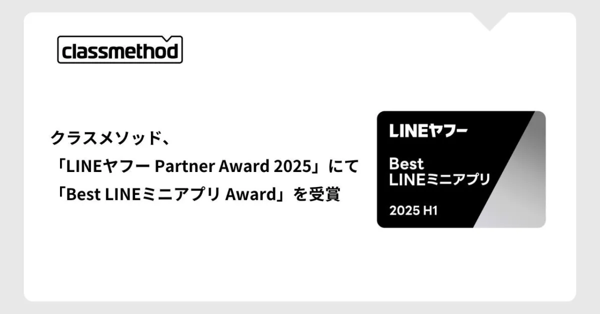 クラスメソッド株式会社は、LINEヤフー株式会社が主催する「LINEヤフー Partner Award 2025」にて「Best LINEミニアプリ Award」を受賞したことが発表された。これは、彼らの提供するLINミニアプリが、ユーザー体験を向上させ、顧客の事業成長を支援するための先進的な取り組みが高く評価された結果である。