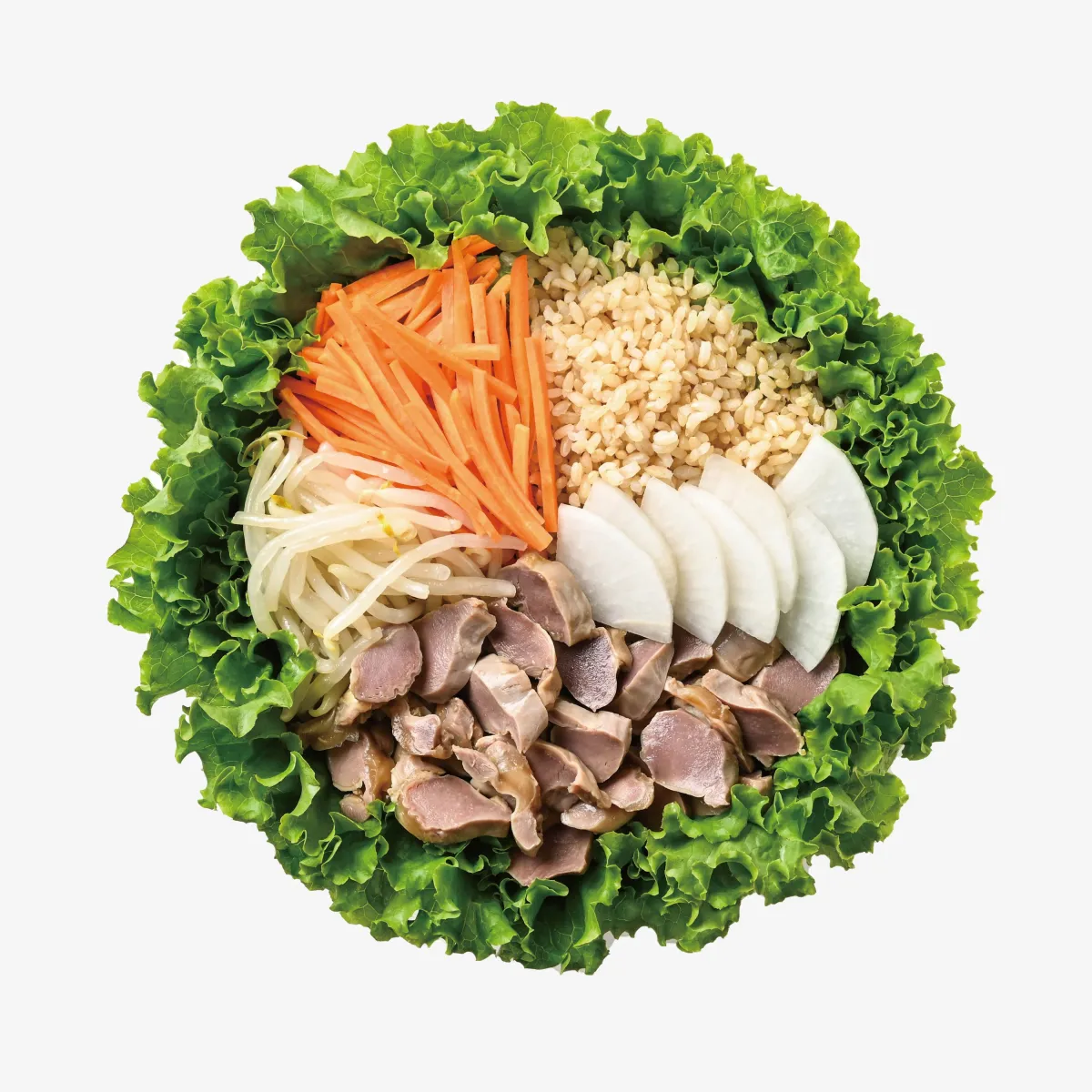 さらに、満足感を与えるために、玄米や人参、大根といった多様な食材も加えています。これにより、見た目にも鮮やかで、食感も楽しめる一皿に仕上がりました。特に特製の醤油だれでじっくり煮込むことで、砂肝の旨味がサラダ全体に広がります。